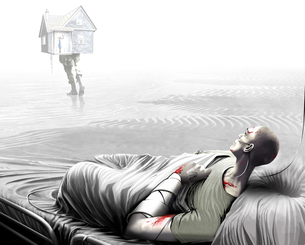 Dibujé lo que me contaron, además de lo que vi, porque el trauma y la esperanza son intangibles, fruto de la memoria y la imaginación. De una extremidad amputada solo quedan recuerdos para dibujar; lo mismo podría decirse de un hogar o un familiar perdido.
