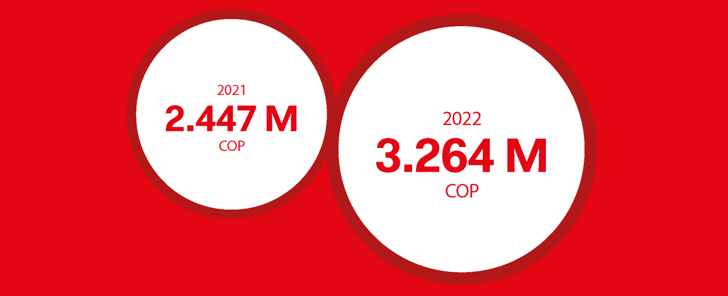En 2022, el ingreso total en Colombia fue de 3.264 millones de pesos.